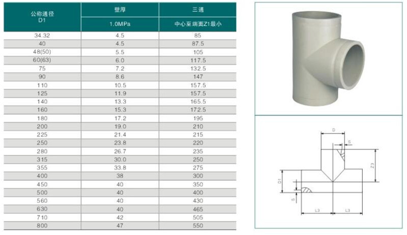4、按照連接方式分有對焊三通、承插三通,熱熔承插三通。